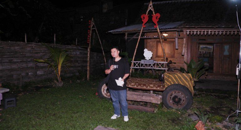 Ruang acara berada di pelataran Sampun Nusantara. Tempat ini berfungsi sebagai wahana edukasi alternatif dengan pendekatan seni dan ekologi. Ruang ini terbuka bagi komunitas yang ingin berkegiatan. Pertunjukan malam itu memperlihatkan bagaimana fungsi ruang dijalankan melalui pertemuan antara tradisi dan aktivitas budaya kontemporer. Penonton duduk berdekatan. Ada yang memilih kursi bambu. Ada yang mengambil tempat di tanah. Mereka menyimak cerita tanpa banyak percakapan. Kamera ponsel terangkat pada beberapa momen. Dukungan mereka memperlihatkan bahwa masyarakat memberi tempat bagi kesenian tradisi untuk terus hidup.